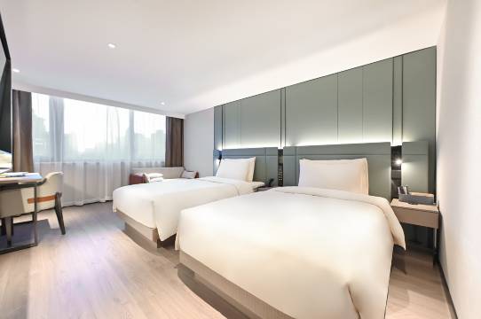 房间和图片一致 ,装修风格简单素雅很喜欢 ,各种设施布置精美 ,卫生very干净 ,入住放心,周边交通出行方便 。隔音好 ,空调凉爽,有一整晚都睡得很安稳,服务人员都很贴心外卖到了送的也很及时,有任何需求也会及时响应 酒店装修也十分好,床品也非常干净没有一点瑕疵,总体来说入住很满意,房间干净整洁,无异味,厕所会有消毒纸巾,而且酒店还会配有小型冰箱里面有可乐和矿泉水供己选择 配套设施非常全面,出门50米就是地铁站,我是来这边出差的,真的觉得非常非常便利 而且周围离哥哥景点也不是很远,前台都很耐心的给我们推荐路线 而且当天房量充足,还会给我们升级发型,真的性价比太高了!