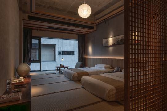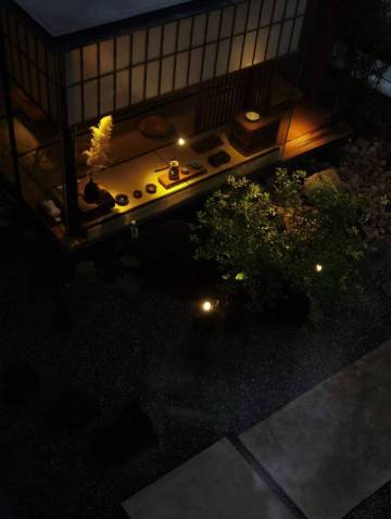 良宵隐的庭院设计将宋代美学、日本侘寂美学融合,运用水泥、金属、木等建筑装饰材料,将审美恰当的器物、音乐、动植物等纳入,点缀科技智能生活理念,为我们带来既古典又现代的居住体验。难得的是那种简约、留白、安静甚至略带残缺的美不仅浓缩于居住环境,更体现在贴心又恬淡的服务上。一切淡淡地、静静地,却是耐人寻味的。这种一体的、和谐的民宿理念实属罕见。