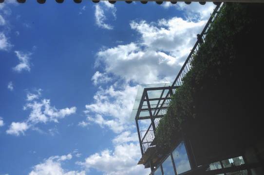 二楼是房东夫妇的住处,和三楼保持独立和私密,三楼是两间带独立卫生间的卧室,其中一间的一面大玻璃门外是大露台,房门外是小客厅小吧台,从露台还可以上顶楼平台,是360度的景观,通过一个木门的通道,走过回廊就是另一间卧室,这两间卧室既可共用又可独立,这间卧室的浴室头顶有自动开关的玻璃天窗,浴缸放在大玻璃窗下,还有一个通向走廊的门,白天可享阳光,晚上可看星空。