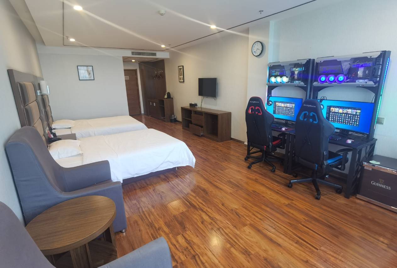 享受电竞、享受酒店。本酒店位于繁华的正阳中路溢德鑫贵爵广场,地处城阳区政治和经济交流中心,距离流亭国际机场约10分钟车程。酒店东靠红星美凯龙、家佳源、利群等大型购物中心;西邻大型电子信息城、银行证券金融机构以及城阳区政府等各级政府机关;南邻宝龙城市广场、城阳人民医院;北邻青岛农业大学、即墨温泉;酒店周边交通便捷。