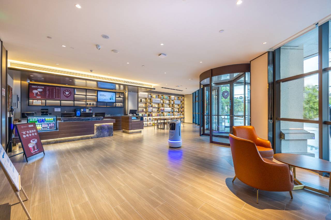 酒店位于富强西路北侧,全新设计给您带来不一样的入住体验,汉庭品牌工业模组设计的2.7版本科技化、设计元素、硬件升级和酒店增值服务成为重头。优越的位置与优美的环境成为多数人的选择,酒店配备洗衣房,自助早餐厅,送物机器人,为宾客提供舒适,优越的住宿环境,酒店期待您的光临!