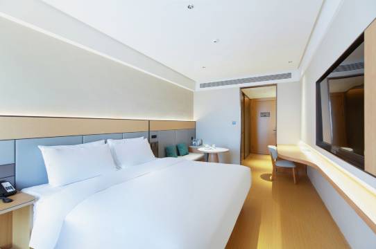 全季沧州迎宾大道酒店坐落于迎宾大道泰大国际家居广场4号楼,临近明珠商贸城,周边还有多条商圈,不管是购物休闲还是商务出行都很方便,同时便于前往沧州西客运站,出行通勤很省心。除了基础的免费停车服务,还配备洗衣房、健身室,满足住客日常洗衣和锻炼需求;另外设有会议厅,适配小型商务会谈,且提供机器人服务,提升入住的便捷性,家庭房的设置也能满足家庭出行的住宿需求。延续全季品牌的东方美学风格,空间布置简约雅致。客房内暖气充足,房间干净整洁,搭配舒适床品,再加上酒店的每日清洁服务,能为住客营造出放松惬意的休息环境,还有丰富多样的早餐,可满足不同食客的口味需求。