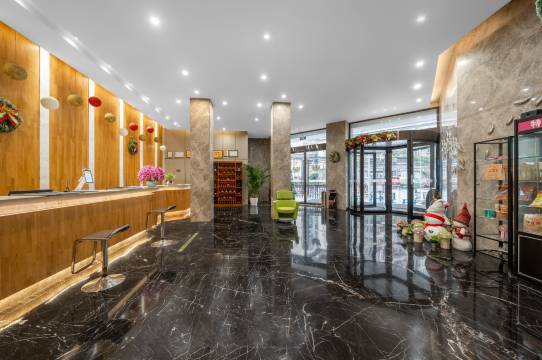 设施齐全 前台服务好 很贴心 还可以免费停车 晚上还有宵夜赠送 很奈斯 卫生也不错干干净净的 大堂还有打卡点 很棒哦 [赞] 离新光天地也超近的