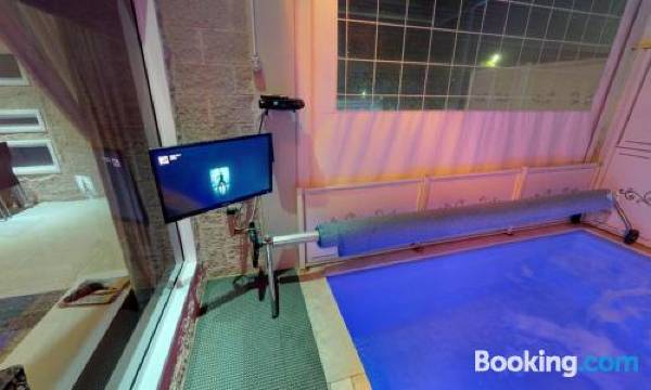 有 3 间空调客房提供私人游泳池和LED 电视;您定能在旅途中找到家的舒适。客房设有私人阳台。简易厨房配有冰箱、炉灶和微波炉。提供免费无线网络,方便您与朋友保持联系;有线频道可满足您的娱乐需求。