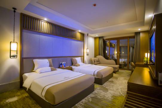 新东南亚设计风格,水景花园的大厅配有品茗茶室,精品咖啡馆、经典鸡尾酒BAR,客房引进全智能客控系统,超屏数码电视,德国科勒卫浴。 甄选云南玫瑰基地提供的植物洗护用品 。