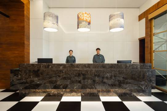 柜台人员亲切有礼,客房清洁到位,地点近轻轨站、youbike 站,周边有7-11、在地面食、便当店,离驳二艺术特区、哈玛星景点近。宵夜品项少,早餐标准。