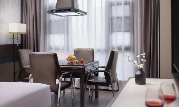 酒店房间装修很好看,大厅有机器人可以送东西,还可以泡茶写字,1楼有健身房。前台小姐姐服务态度好,很热情。