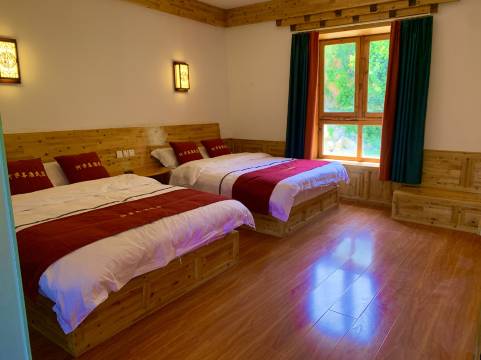 双床标间都是是一米五的床,携程上标的1米二当时还有些担心挤,一家四口出行正合适,老板是藏民很质朴,烧的青椒肉丝特别好吃,我们晚上出去遛弯回来晚了,他们很担心还打电话问我们到哪里了
