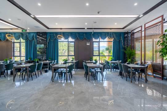 酒店提供自助餐厅、中餐包厢、KTV、休闲茶室、多功能厅、多种康养温泉泡池25个、影院足浴、游泳池、儿童游乐场、洗衣房、健身器材、自助烧烤等。酒店采用简欧式装修风格,内设实木家具、慕斯床品、智能马桶、电视、空调、冷热水24小时供应等基础设施一应俱全,每间房间都设有无线WIFI。客房内空间开阔,房间采光性良好,陈设简约、雅典、大气,部分客房配有浴缸,为客人提供温馨舒适的休憩度假场所。酒店餐饮业另有独特风格,菜肴色、香、味俱全。珍馐百味、幽雅的环境、超值的服务,无论是会友宴客,还是小憩都是客人的好去处。