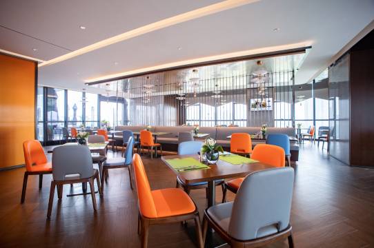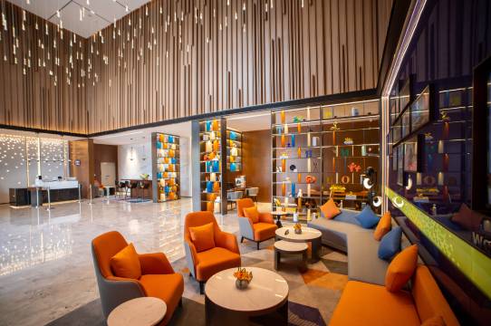 酒店位于中山翠亨新区和信路18号西湾科技金融大厦B栋,是深中通道中山点最近的国际中高端商务连锁酒店品牌,毗邻深中通道-深中大桥桥头堡处,中山至深圳的观光巴士-中山国际人才港、翠亨新区规划馆等站点近在咫尺,距离酒店约2分钟距离,酒店背靠翠湖公园,茶余饭后漫步运动好去处,距离海边约5分钟距离,可以观赏日出日落中深中通道的绝美磅礴,距离国家AAAAA级景区孙中山故居、中山影视城、南朗涯口网红打卡地及海鲜街约20分钟,距离南朗轻轨站约15分钟、东部儿童公园约10分钟,酒店拥有多间舒适客房,1个多功能会议室,可容纳约230人,承接各种经销商会,培训会,招商会等,配套齐全,提供全日制中西式餐厅,餐厅同时推出了特色粤菜及中山美食,可容纳约200人就餐,配备健身室、自助洗衣房,浅暖色调的现代设计风格,巧妙的空间布局,为您带来温馨舒适的体验。