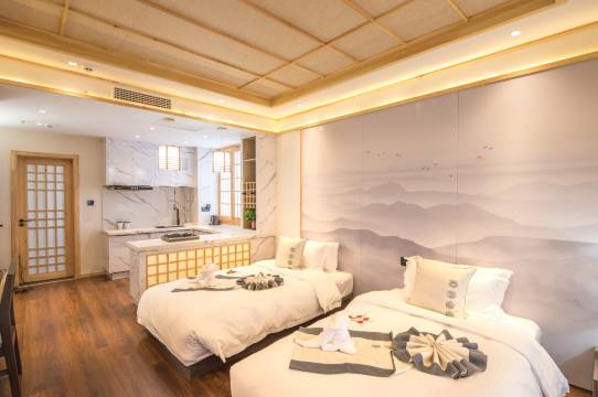 房间特别干净,不用出门就能泡私汤,孩子们在里面玩的开心,智能马桶,设施很新,周围环境也好,还有冰箱啥的。