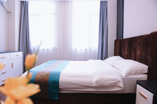预定的房间很不错,价格也很划算;房间环境非常好、很满意;卫生很干净、且设施齐全;前台服务态度非常好,很热情;地理位置也很优越,临近金叶广场、维多利广场。
