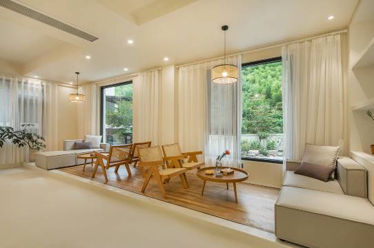 一、地理位置水灣灣觀夏北緯30°漂流度假咖啡民宿,隱匿於安吉這片鐘靈毓秀的山水勝地,精准錨定在北緯30°這一充滿神秘色彩與獨特魅力的神奇緯線上。 四周被蓊鬱山林層層環抱,四季景致更迭,風光旖旎無限,得天獨厚的自然景觀,使之成為一方遠離塵世喧囂、盡情擁抱大自然的人間淨土。 二、交通出行交通條件極為優越,毗鄰交通幹道,非常適合自駕遊,自駕途中,車窗外如畫的風景綿延不絕,讓您在抵達民宿之前,便已深深沉醉於大自然的美妙饋贈之中。 若您選擇公共交通出行,民宿還貼心備有專屬有償接送服務,無縫銜接您的行程,確保您的旅途全程無憂。 三、周邊商圈民宿雖靜臥於自然的懷抱,卻並未與都市脫節。 在民宿周邊的小鎮黃金生活圈內,各類商業設施琳琅滿目,一應俱全。 從彙聚地方特色風味的小吃店鋪,到洋溢著浪漫氛圍的精緻餐廳; 從引領時尚潮流的購物中心,到充滿濃郁生活氣息的農貿市場,全方位滿足您的多元生活需求,讓您在享受自然寧靜的同時,亦能暢享現代都市生活的便捷與繁華。 四、景點資源民宿本身便是一處令人流連忘返的動人景點。 依傍著潺潺流淌的清澈溪流,四周是連綿起伏、如黛似墨的青山,四季風光各有千秋,宛如一幅幅靈動的山水畫卷。 春日,漫山遍野的爛漫野花肆意綻放,爭奇鬥豔; 盛夏,可於溪邊嬉戲玩水,感受清凉溪水的溫柔撫慰; 金秋,層林盡染,漫山紅葉似火,美如詩篇; 寒冬,銀裝素裹,整個世界仿佛被披上了一層夢幻的白色紗衣,宛如童話世界。 此外,民宿與浙北峽谷漂流僅咫尺之遙,無疑是漂流愛好者夢寐以求的樂園。 附近還可以探索浙北大峽谷,滑翔傘,高空秋千,玻璃棧道等。 五、飯店特色作為安吉縣評定的白金宿民宿,水灣灣觀夏北緯30°漂流度假咖啡民宿獨具非凡魅力。 民宿內的每一間客房皆經過精心雕琢,巧妙融入自然元素,讓您足不出戶,便能將窗外的絕美風光盡收眼底。 特色咖啡吧彌漫著醇厚的咖啡香氣,在這裡,您可以悠然品味一杯香濃咖啡,靜靜感受慢生活的閒適與愜意。 更為貼心的是,從您踏入民宿的那一刻起,專業貼心的管家便會為您悉心安排好一切,讓您在這裡感受到家一般的溫暖與舒適。 民宿聘請知名設計師結合實地避世風貌建構而成。 帶著北緯30度的倔强和不凡。 守望在天然野溪泉逐年累月地拍打衝擊形成的寬廣而絕美的石灘和水潭秘境邊。 熱情而清凉,溫暖且放鬆。 期待借由觀夏與生俱來的純粹和簡單,感受那淡淡的不佔有,不屈服,尋覓與自然生態的和諧共存。 沒有一幅畫,那就用大尺寸的落地窗,引全天的風景入室。 馬歇爾音質下的七類自然光彩主題客房,有日出或夕陽的浪漫紅,讓人愉悅和倍增活力的檸檬黃,介於紅黃之間最令人溫暖的柳丁以及象徵著環保和新生的綠。 天的藍,星空的紫,還有湖泊的顏色,就像《瓦爾登湖》裏說“我愛給我的生命留有更多餘地”,卸下浮躁,與觀夏,順應自然的感召。
