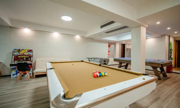 环境卫生:装修风格淡雅舒适,一楼有咖啡吧,负一楼有桌球乒乓球Ps5等游戏设备,很有家的温暖,房间整洁,一次性用品配备齐全(还贴心准备了一次性马桶套)。