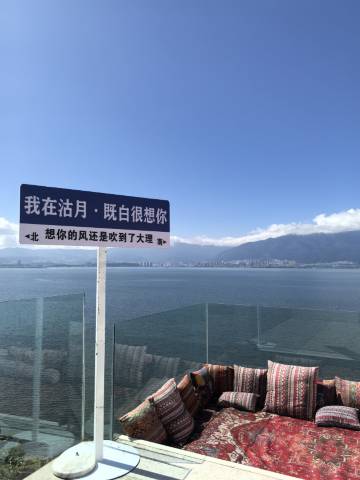 洱海边的家庭别墅型民宿,视角效果很好,拍照挺出片的,周边好吃的地方比较少,东北老板挺热情的,早餐也还行,就是少了一杯咖啡☕,走的时候还送了拌手礼。