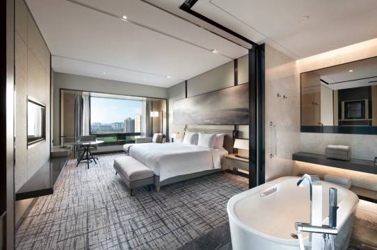 酒店拥有开阔舒适、设计雅致的客房。宾客可在房间凭窗眺望酒店优美的私家花园,亦可漫步花园小径或在慢跑道上晨跑,享受大都市中的世外桃源。