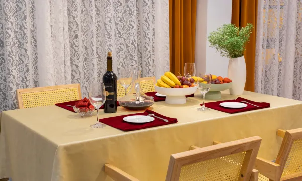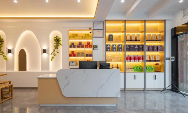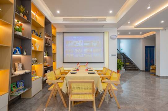 奢华低调的大堂吧包涵了巨幕投影、沙发休息区、餐桌和茶室。老板的第二层身份便是厨师,烧的家常菜可口美味。在这里约上三五好友喝上一盏清香扑鼻的茶,午后沐浴着阳光阅读书籍,尝尝老板烧的家常菜,感受一下家的味道;又或者是窝在沙发上观看巨幕电影。