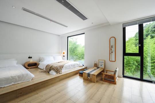 民宿紧邻河水,推窗就是粼粼波光,清晨薄雾漫过河面时尤其美。岸边有老树垂枝,像住进了一幅活的山水画。房间干净整洁,设计简约,一看老板就非常用心,早餐也非常美味!老板官家都非常热情,以后还会再来的