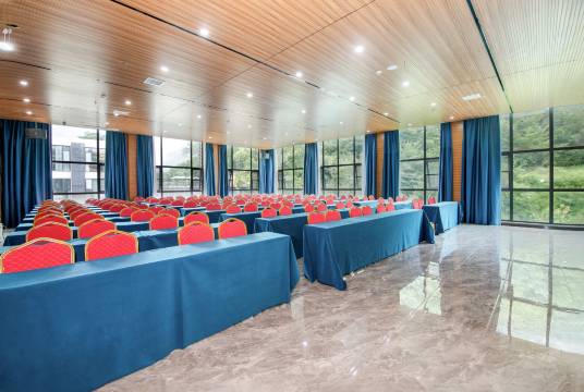 酒店位于国家5A级景区林州太行大峡谷,近桃花谷景区,是一家集住房、餐饮、会议、商务宴请、休闲度假为一体的综合性酒店。本店拥有一个面积为260平的会议室和一个220平的多功能厅,另有80平小会议室。室外游泳池及温泉池可供团建培训家庭游玩等。拥有能容纳8人到20人的餐饮包间5个,室外烧烤专区亭子10个,是您商务宴请和家庭聚餐、旅游度假的首选。