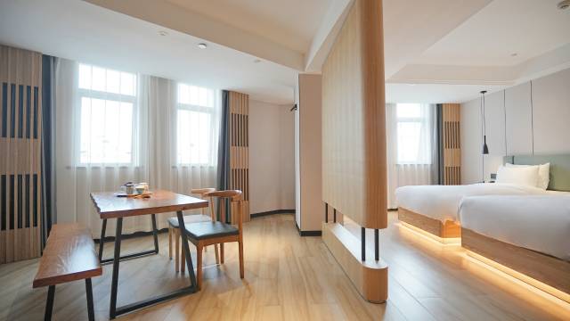 吹爆这家的零压床垫!原本对200多的酒店没抱太高期待,结果从进门就一路惊喜,原木家具环保有格调,智能马桶和窗帘显得很高级,尤其是接送高铁站的服务太贴心了!退房时还主动帮忙提行李,细节服务到位,必须五星好评!
