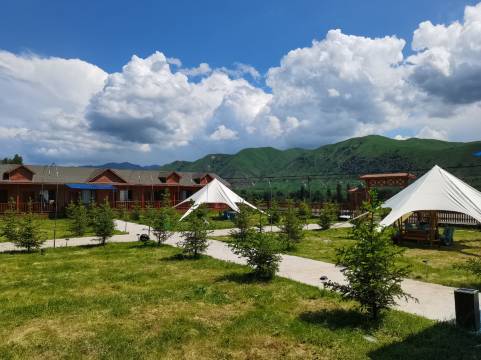 尼勒克县被誉为蜜蜂之都,种蜂场称之为蜜蜂小镇,而马背部落民宿就矗立在唐布拉大草原西侧,绵延的雪山、葱郁的林草、多彩的民俗……在尼勒克县独特的唐布拉风景区,吸引八方来客,随着人们生活质量的提高,追随的品质生活也随之提升,那么,民宿是旅途中的一个家、一道风景,连接起乡村与城市、旅行与生活。在尼勒克县唐布拉大草原,除了这些美景,一座座依山傍水的毡房、民宿,正吸引着众多游客于诗意栖居中感受浓浓的乡愁。清晨迎着草原上升起的阳光,骑马在喀什河畔,听着小河流水,看着顶顶毡房的炊烟袅袅,民宿园内平房木制房间主要用纯天然松木搭建,墙上的挂饰、床单、窗帘,手工刺绣,木质餐具,让游客零距离感受到哈萨克族文化传统,这里奶茶的味道实属一绝,餐饮为哈萨克族美食,包括手抓羊肉,纳仁、马肉、马肠子、平锅肉、羊肚子包肉,来到这里可以深切感受当地人的生活。