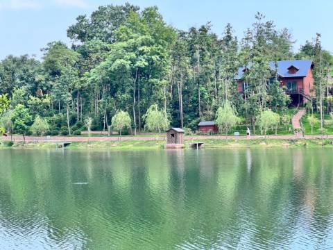 难得在武汉周边找到一家有私汤的家庭房,没想到去了后才发现这里的风景真是太美了。度假民宿规模不小,占据木兰湖边上的一座半岛。有山有水,草地遍野,树木成荫,民宿建筑与山水园林设计融为一体,一派自然和谐景象。木屋住宿卫生和设施都很不错,可以自助烧烤和垂钓休闲放松一整天。还是提点小建议:房内牙具品质比较差,希望换个好一点的品牌。