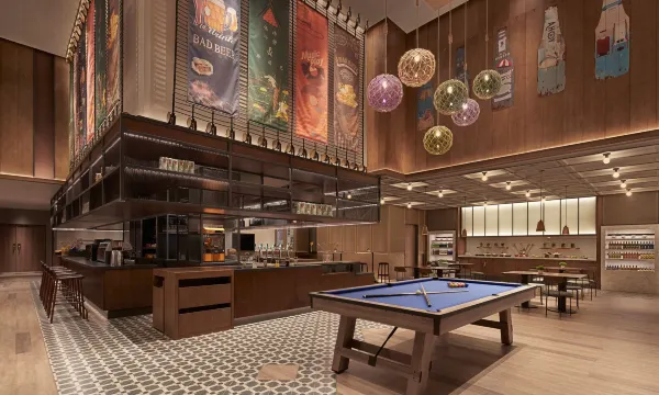 若您想在天津国家会展中心附近寻得一处放松休憩之地,国家会展中心天津福朋喜来登酒店便是您的理想选择。酒店地处天津大道与国瑞路地铁站旁,距离机场和火车站都不到30分钟车程,交通十分便利。复古现代的室内设计,灵感来自水手们的港口生活,简约雅致的客房可让宾客尽享舒适与惬意。“玩啤食社”作为品牌的新概念餐饮,是集多种功能与一体的灵活多元化空间,除了享用地道美食,亦可来杯现磨咖啡、点杯当地精酿啤酒、与挚友聊天或是游戏聚会。有会议或活动需求的宾客拥有6个灵活场地可以选择,方便活动策划师为您量身定制活动方案。酒店与国家会展中心天津万豪酒店毗邻而居,使得宾客能够充分利用额外的设施设备,比如餐厅,健身中心,游泳池和会议空间。