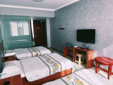住了一晚鄂托克旗如家宾馆的三人间,房间挺宽敞,被褥干净,只有一层,出入方便,存车场超大,老板夫妇很热情,价格便宜