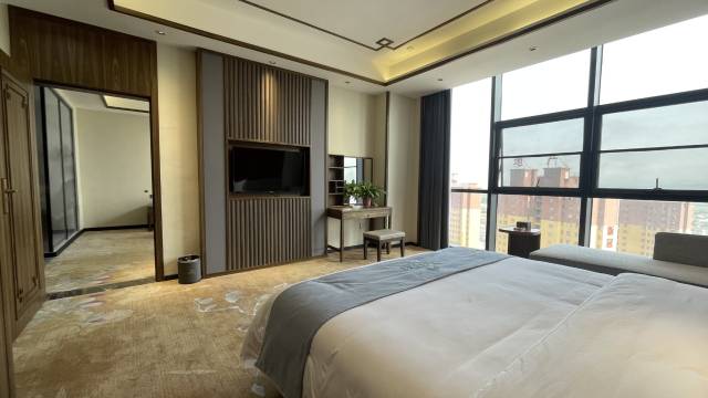 酒店11-21层为客房区,总面积约15800㎡。设有雅致中式复古和现代简约轻奢两种风格客房。酒店环境优美、格调高雅;客房舒适、豪华。房型设有标准间、大床房、亲子房和豪华套房,可同时容纳300余人入住。