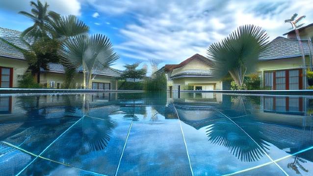 酒店的环境无敌,远超这个价位所应该有的标准,中间有个泳池,见p1,我用无人机拍的。水非常干净每天换,有旅客游泳,周围植被都很茂盛。