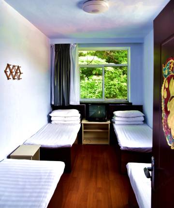 山上比较简洁的标间,没有吹风机,但是有空调,我觉得这种山上的景区要求不能高,因为在山上避免不了有虫。老板和工作人员很随和很热情,入住当天有公司搞团建有篝火晚会,还有很自嗨的唱歌跳舞中年大叔大姐组,比住山下有氛围!不怕虫的真的可以选择