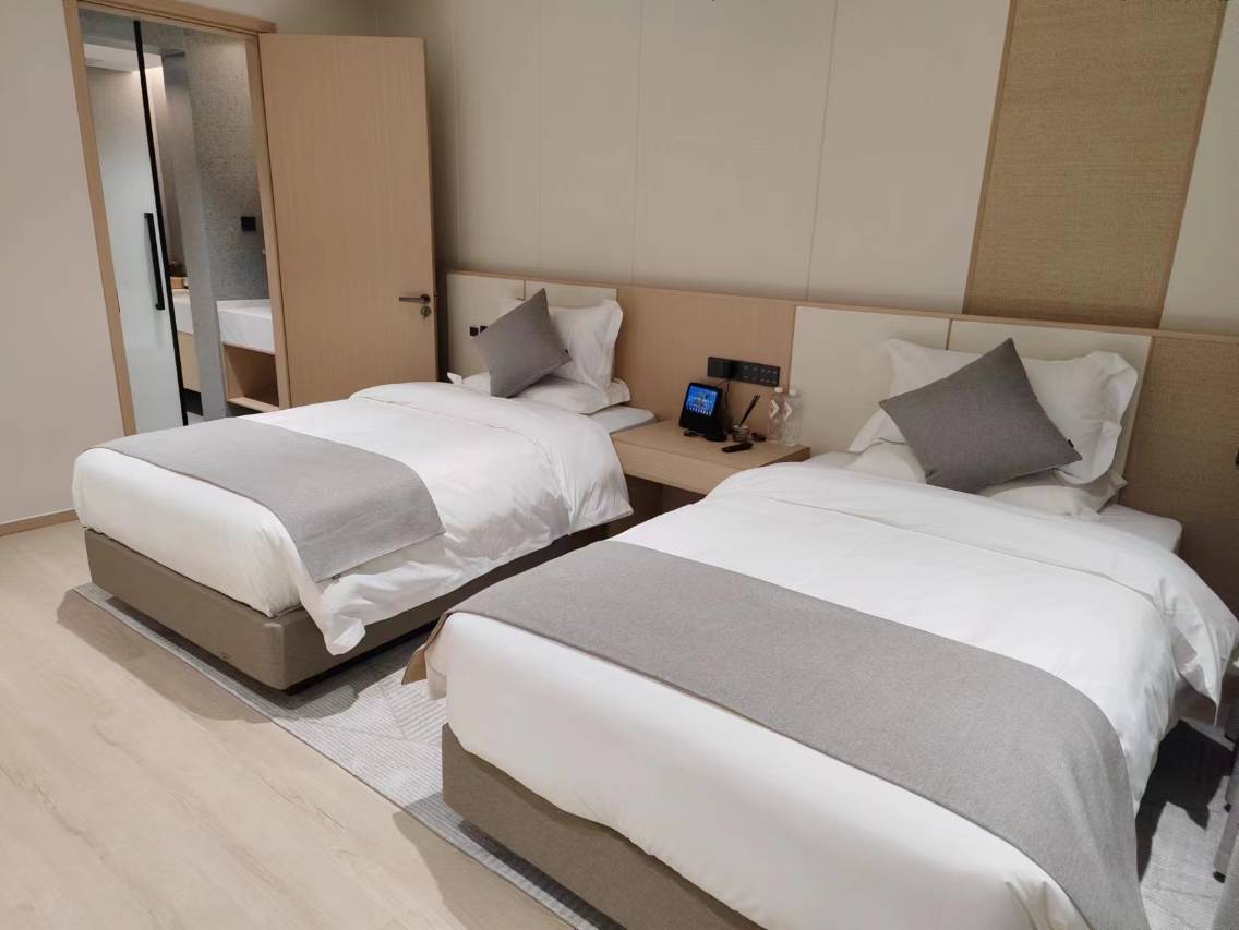 房间卫生干净,布局合理,电动窗帘声控门廊灯,服务人员热情,咨询爬山的事情耐心指点,早餐尚可,家常便饭,吃的很饱,酒店后面可免费停车。