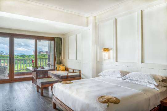 松赞普洱绿谷坐落于湿地公园,藏傣风设计雅致,房间带阳台、配恒温泳池,餐食精致且可体验舂鸡脚,服务贴心赠定制布鞋。松赞普洱绿谷位置优越,景观美,设施舒适,服务贴心,餐食美味,但也有一些小不足。