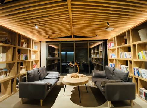 设施:民宿内大量采用木制装修,楼梯也是松木地板,民宿内还有很多很多的书。