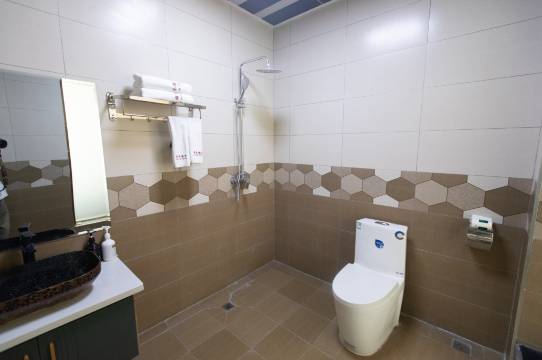 房间很大,尤其是卫生间空间巨大,小孩喝药不小心弄脏了被褥子,和老板说一下很快就解决,非常满意的住宿。下次到赛湖完也住这里