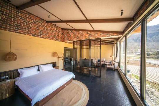 有景致各异的特色客房,依偎于意境深远的古老山脉之中,房屋建筑结合当地农家建筑风格与周围的农田融为一体,房间配备全智能化、现代化卫浴、精致的蒸食、私人管家服务,致力于打造独树一帜的轻奢民宿。 坐在房中就可以一览周边的田园风光,闲暇时可以去到田中体验采摘等体验活动,晚上可提供烤全羊、烧烤、在这里可以让您享有一次圆满丰富的旅行体验。