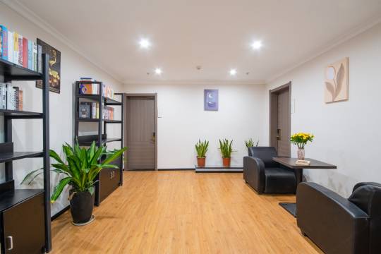 房间宽敞明亮,采光特别好,大窗户搭配双层窗帘,既能享受充足的自然光,又能在需要时营造静谧的休息环境。两张1.2米的床干净整洁,铺着柔软的床品,躺上去舒适又安心,和朋友一起住也完全不挤。卫生方面也做得很到位,地板光洁,角落一尘不染,让人住得特别放心。前台服务热情周到,办理入住和退房都很高效,有需求也能及时响应