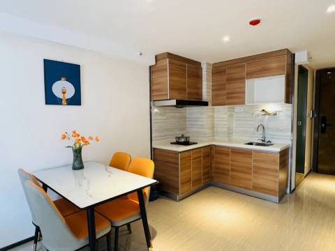 房间卫生很干净,环境清静,老板姐姐服务也很好,房间设施齐全,还可以自己煮饭,最满意的是客厅里的投影仪,交通和餐饮都很方便,很满意的一次住宿体验,下次去还选你们家