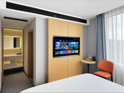 酒店很好,可以免费停车很方便,周边有吃的,床品干净很舒服,干湿分离,新装修,装修风格很好看,儿子住的双床房,说双床房房间很大,没有拍照,就用大床房的图片了。