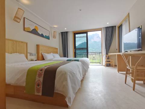 江山郎峰居民宿坐落于浙江省江山市石门镇郎峰村店下塘6号,地处世界自然遗产、国家5A级景区江郎山脚下,依山傍水,环境清幽,是远离城市喧嚣、亲近自然山水的理想栖居地。民宿以“隐于山野,归于心居”为理念,将传统村落的质朴韵味与现代旅居的舒适体验相融合,为游客提供一处静谧而温馨的休憩之所。 地理区位得天独厚,步行或短途驾车即可直达郎峰、须女湖、一线天等核心景点,便于游客错峰游览,避开人流高峰。周边还毗邻清漾毛氏文化村、仙霞古道、廿八都古镇等人文自然景观,形成“一日山野徒步,半日古村探幽”的多元旅行体验。青石板巷、夯土墙屋与田园风光交织,四季皆有景致:春可赏油菜花海,夏可纳山间凉风,秋观层林尽染,冬品霜雪静谧。 建筑设计与空间营造 民宿主体为一栋三层徽派风格小楼,白墙黛瓦与周边自然环境和谐相融。民宿公共区域布局错落有致:一层为开放式客厅与餐厅,提供免费自助茶水、书籍借阅服务;二层设观景露台,可远眺江郎山丹霞奇峰;顶层星空房配备全景天窗,晴朗夜晚可躺看银河繁星。 客房配置与贴心服务 民宿客房,涵盖山景大床房、家庭亲子房等房型,均以原木色为主调,搭配纯棉床品与手作装饰,营造温馨自然的居住氛围。每间客房配备独立卫浴、空调、高速Wi-Fi及24小时热水,部分房型还设有观景飘窗。民宿可为游客定制江郎山徒步路线、推荐时令农家菜,并提供免费停车、行李寄存、叫醒服务等一站式服务。 在地美食与人文体验 民宿餐厅主打“江郎山味”,食材多取自周边田园:现摘的时令蔬菜、石门镇特产红薯粉、须鲜鱼,经主人精心烹制,化作一道道地道农家菜。 江山郎峰居民宿,以山为邻,以院为家,诚邀您暂别匆忙,在此细品时光慢流,静享山野之趣。