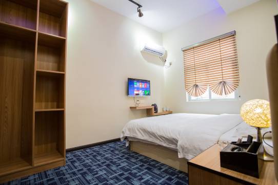 老板服务很好,孩子吐了床上了。很晚了还来给换床单。离海洋馆也很近,附近交通便利。
