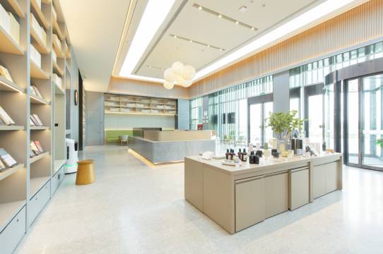 大堂是简约的原木风,书架与绿植错落,泡一壶茶就能坐很久,安静又治愈。