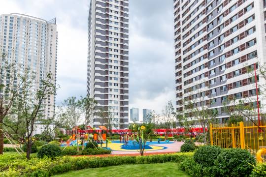 带着孩子一起玩,小区里面还有滑梯秋千,不错的选择