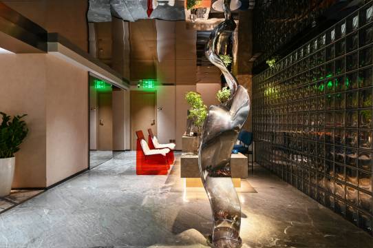 **地理位置与外观:** 酒店位于望京核心地段,交通便利,毗邻商业区与地铁站,兼顾商务与休闲需求。建筑外观融合现代设计与新中式元素,低调却不失格调,入口处的前台造景营造出家的氛围,瞬间隔绝都市喧嚣。