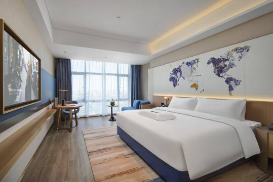 大的综合性酒店旅游产业集团之一的锦江国际集团。酒店倡导“活在当下,尽享此刻”(Seize The Moment)的生活态度,围绕“旅行、探索、世界”三大关键词,致力于打造“激发旅行乐趣,激活探索人生”的国际中端商旅酒店品牌。