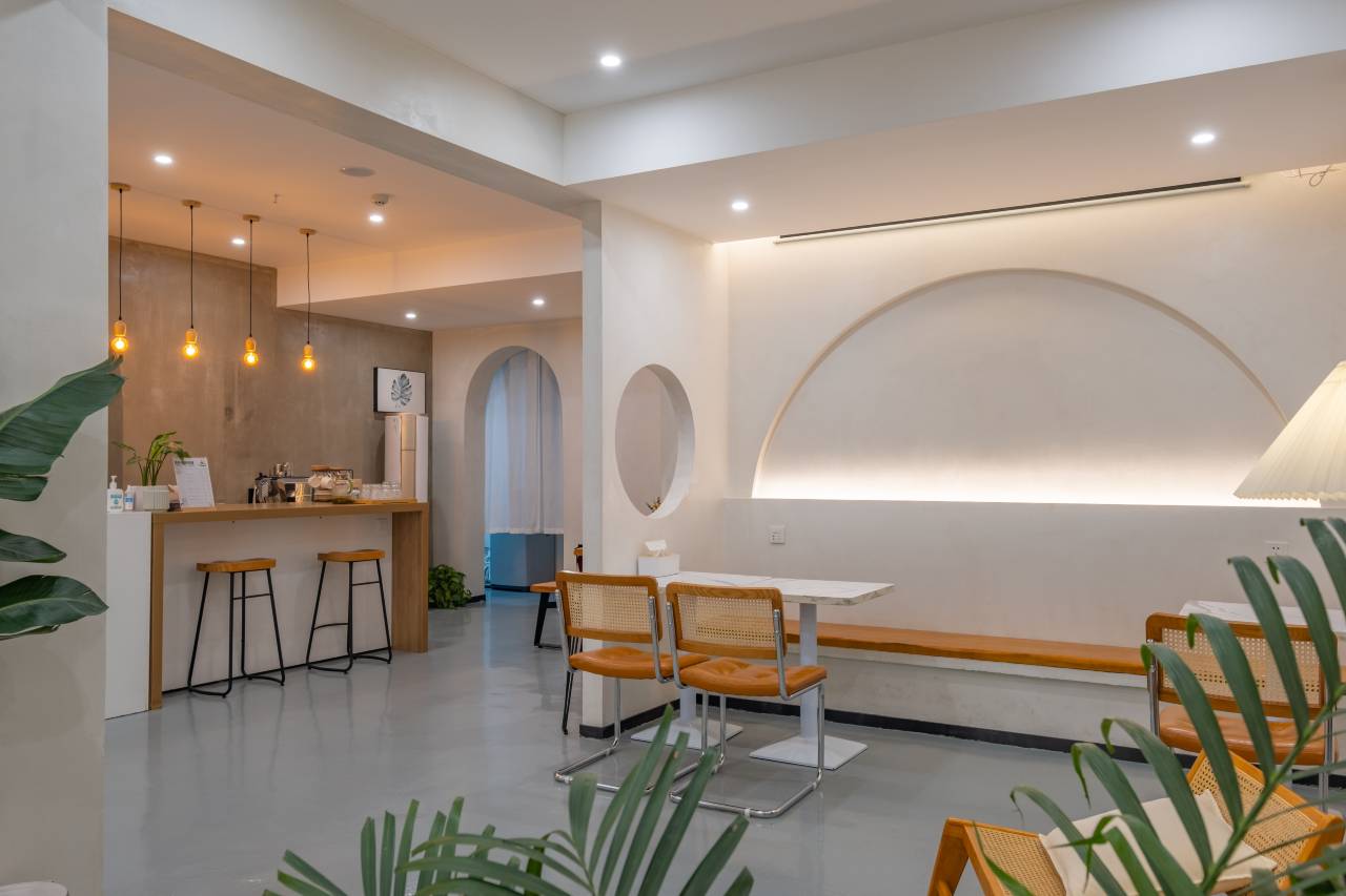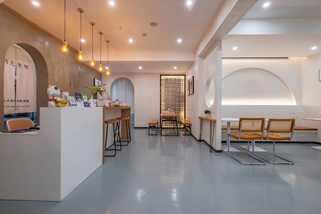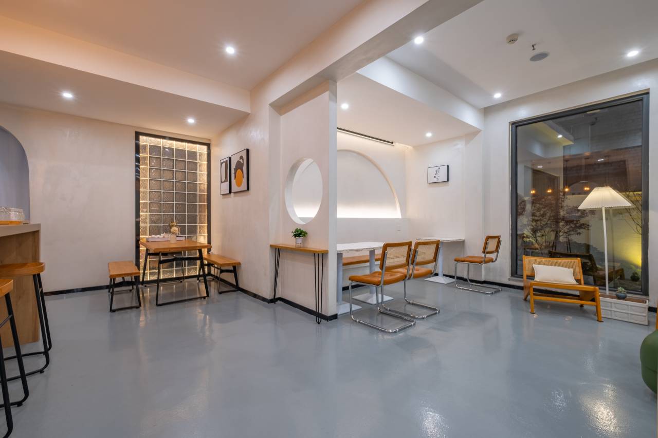 一层大厅设有舒适的用餐区域,这里有着地道风味美食和咖啡茶饮,简约的大厅设计,与窗外的院景交相辉映,无不展现出人与自然和谐共处的模样。