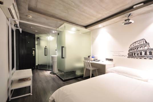 房间干净舒适 投影仪清晰 房间办工桌 全身镜衣架都有 酒店有两个入口 澳门路这个是有电梯的 离地铁站近 前台很热情 认真负责