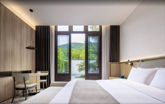 绍兴上虞花间堂·圆境藏于山林湖畔,一步一景尽显东方美学。榫卯与圆元素贯穿设计,白墙黛瓦搭配水景光影,氛围感拉满。房间雅致舒适,备品齐全,服务贴心周到。早餐丰富地道,周边环境清幽静谧,是逃离喧嚣的绝佳去处。整体体验满分,值得再来。