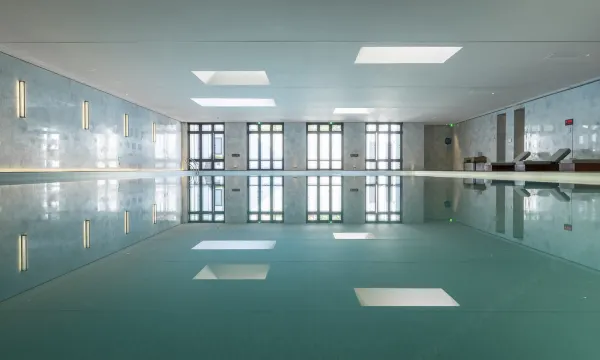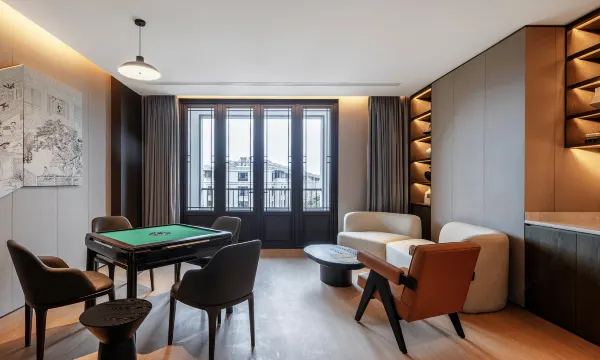 酒店位于浙江省绍兴市上虞区,附近为风景秀丽的龙山森林公园,它位于自然景色优美、人文古迹丰富的兰芎山之间的山谷地带。花间堂·圆境整个空间设计以自然为出发点,采用东方美学 “榫卯”语言对整体空间表达,筒约大方。同时加入金属线条镶嵌,极具当代时光艺术感,传统与现代相结合,用摩登东方美学设计语言,表达出人与自然和谐共生,将艺术与生活相结合的效果。软装将延续这种节奏,运用摩登东方语言营造当代人文高致,进而提升原本空间的高度及深度,达到“灵以静生,境因圆融”的艺术效果。酒店客房融入现代美学设计,呈现自然、美好生活的空间将其融入于家具、地毯、窗帘、饰品;客房配备浴缸,茶具茶台,迷你吧等配套设施;酒店区域内网络覆盖,免费WiFi。酒店还拥有两个多功能会议室,五间棋牌室,室内外泳池,健身房和池畔饮料休闲区。