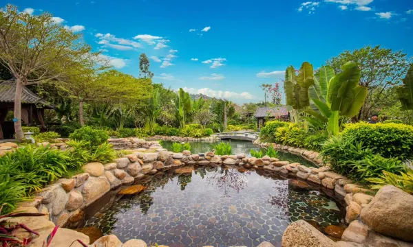 服务:酒店主动免费帮我们升级了园景带泡池的房间,景观一流,入住后发现一个房间内有与隔壁房相通的暗门,我们刚好两大两小订了两个房间,就让前台iris帮忙调挤到暗门相通的两个房间,更方便了我们照顾孩子,不用经常从房门口出出入入了,服务值得一赞。